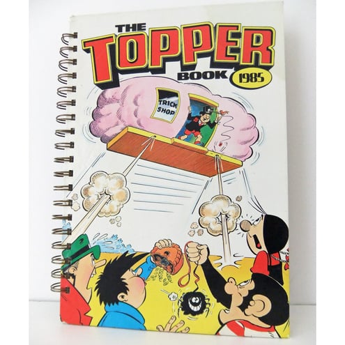 A fabulous notebook, lovingly re-crafted from the 1985 Topper Book. This is a fantastic notebook for drawing, sketching or making notes or doodles. It would make a lovely gift for a Topper fan! Is 1985 a special year for someone you know? A great 30th birthday gift for someone born in 1985. Bring back childhood memories with this special journal!