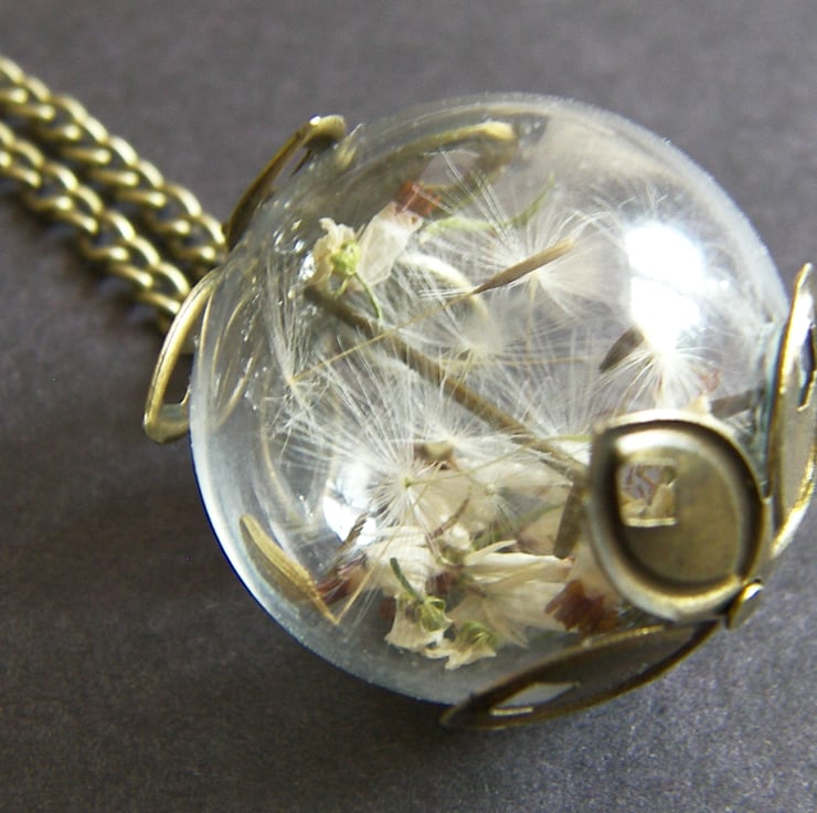 I loved blowing dandelion clocks with my Mum when I was a child, this necklace is such a pretty reminder of childhood innocence