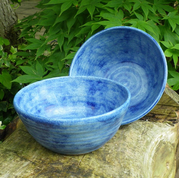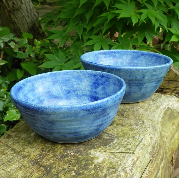 These bowls were thrown on my pottery wheel using strong white stoneware clay and finished in a lovely bright blue satin reactive glaze.