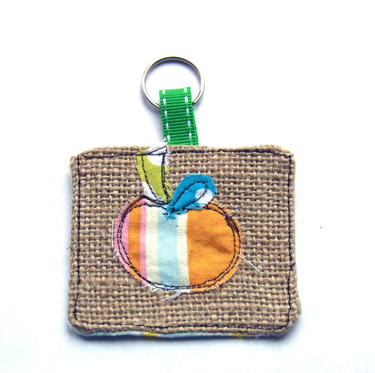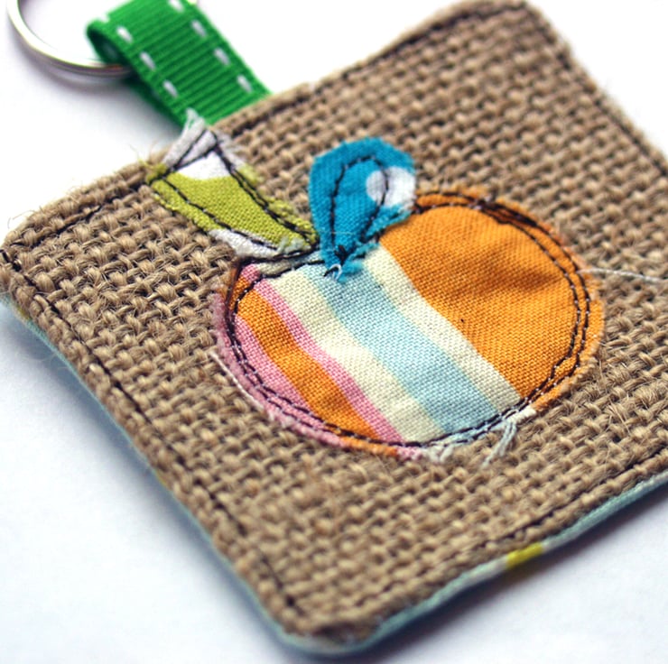 Made in hessian and desginer 100% cotton. It measures approx 2.5" x2.5" with a small apple appliqued onto the front.