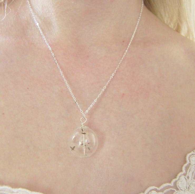 Real Dandelion Seeds Necklace Hand Blown Glass Orb - Make a Wish