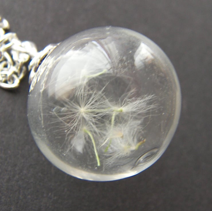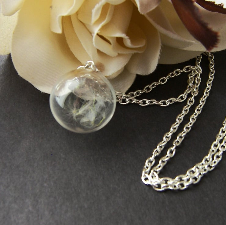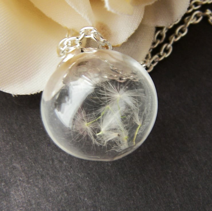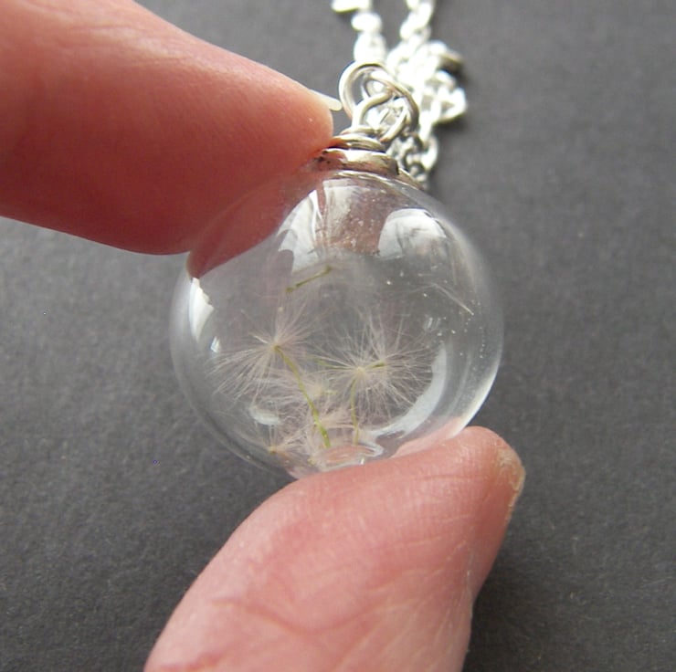 Real Dandelion Seeds Necklace Hand Blown Glass Orb - Make a Wish