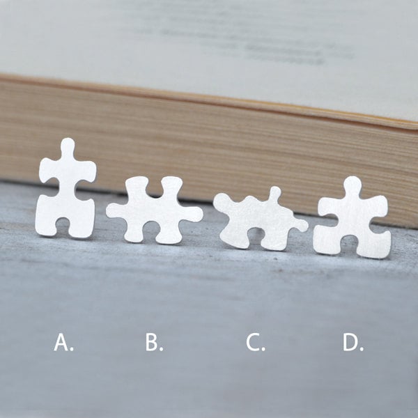 Found the missing piece to your life? These fun jigsaw puzzle earring studs are hand sawn from a sheet of solid sterling silver and soldered with sterling silver ear pins using the traditional method which has been used to make jewellery for thousands of years. They will be gift wrapped with love in a jewellery tin box. These will make a nice gift for yourself or a loved one.