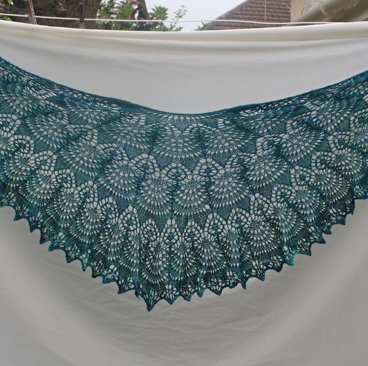 I had bought this beautiful grreny blue yarn and wanted a pattern that would show it off to it's best. All the yarn overs and counting were worth it in the end.