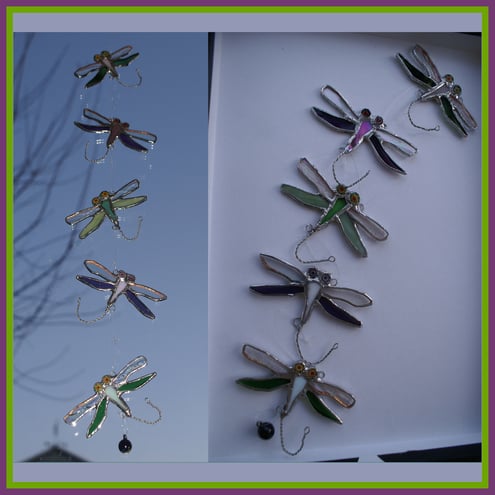 The first 2 photos shows the dragonfly string for sale here. The first shows it in 2 different lights and I have tried to show a bit more detail of the individual dragonfly in the 2nd photo.