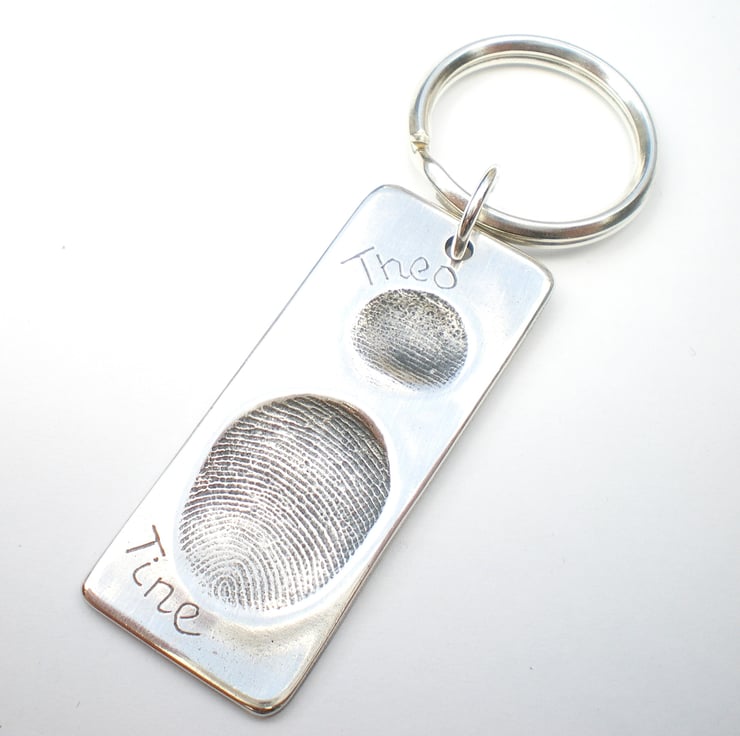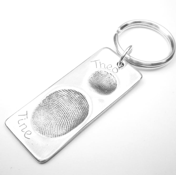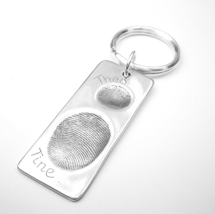 A perfect Father's day gift for men, this personalised keychain captures your loved one’s fingerprint forever. These fingerprint key rings can be engraved on the front and back.