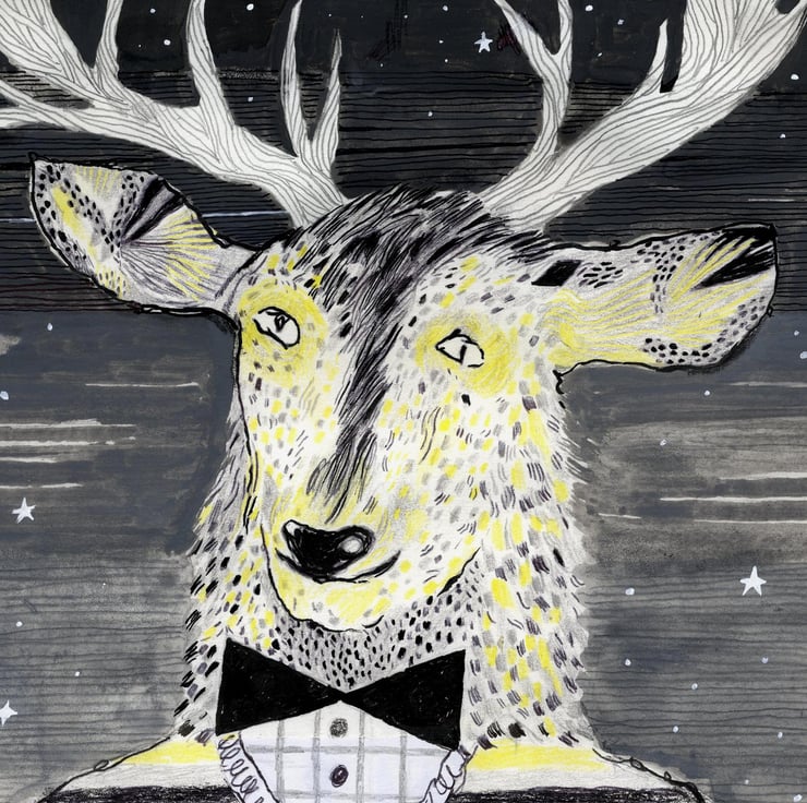 Here is an A3 Print (11.69 by 16.54 in) of The Golden Stag, inspired by the folk tale - and tanktops