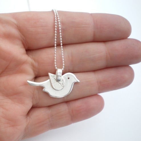 This pendant is just so cute and perfect for winter. I hand crafted this tiny little bird from fine silver and then gave him a beautiful little textured wing!