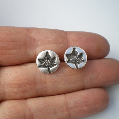Small fine silver stud earrings with an ivy leaf design. Inspired by nature and made from recycled silver these pretty little earrings make a great eco friendly choice!