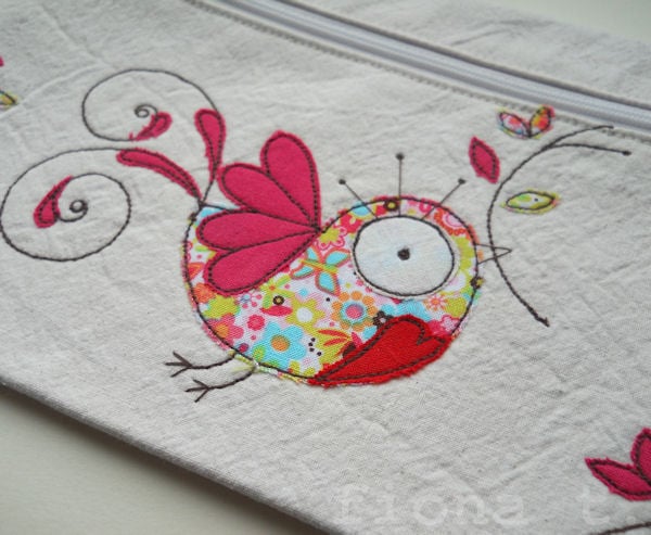 the fabrics are layered and appliqued onto pre-washed calico, and the intricate details drawn on with free machine (free motion) embroidery, before i make up the finished item.