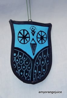 Gorgeous little hooters in a vibrant red glass, hand painted by me using traditional kiln fired glass paint. When they come out of the kiln I wrap them tightly in lead edging and finish with a hanging ribbon. 10 cm/ 4 inches from head to toe