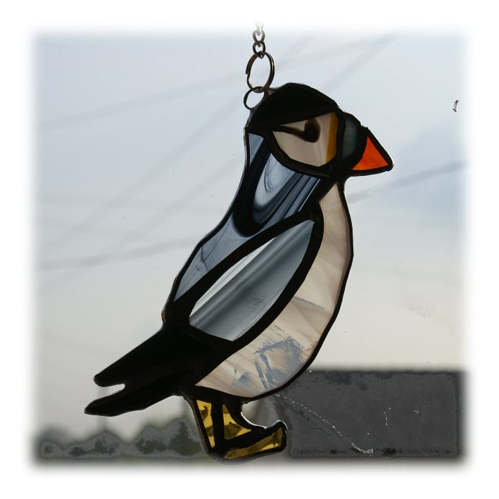 puffin skomer island bird suncatcher stained glass
