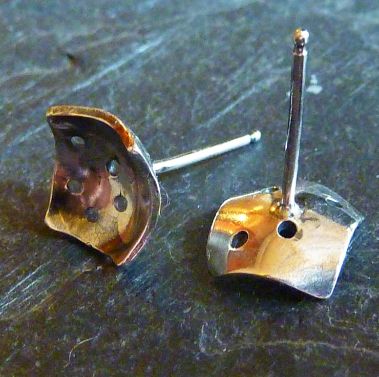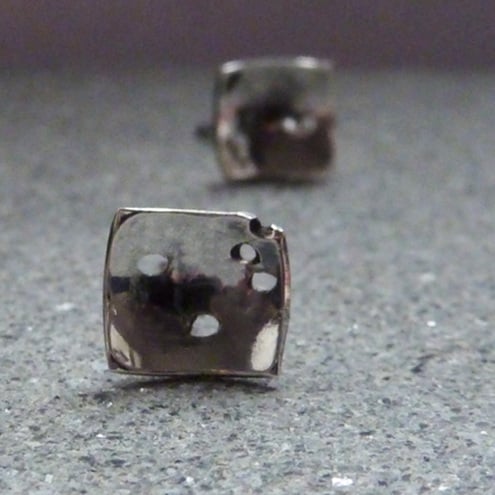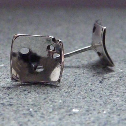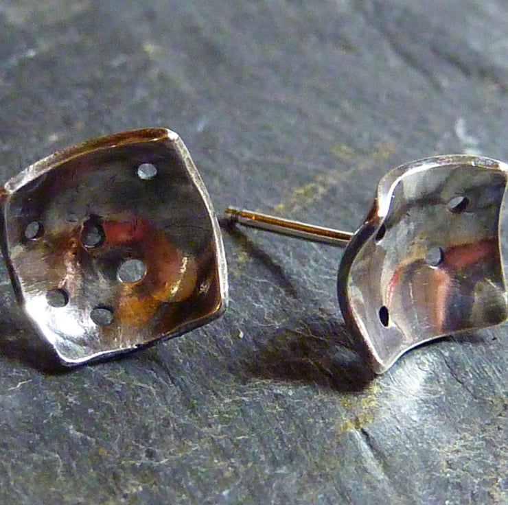 Really unusual. I've drilled tiny holes in an irregular pattern into these little domed squares in order to give a rugged appearance. Each earring will be slightly different so that you'll have a unique pair.