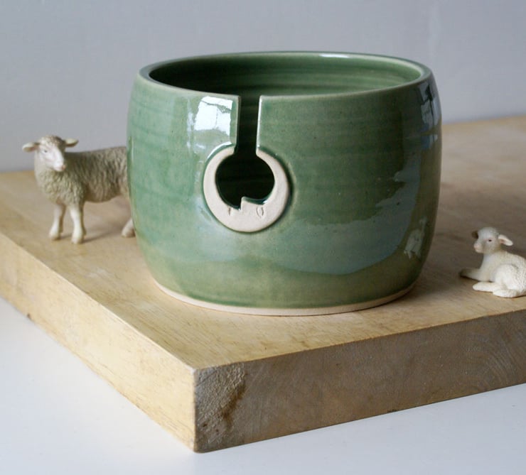 Hand thrown on my potters wheel this ceramic yarn bowl will be decorated in a glaze of your choice picked from the colour chart. It features a gently bulbed shape and a hole for your yarn to hook into when your knitting. Using a yarn bowl prevents your balls of yarn from rolling around on the floor away from pets or little wandering hands.