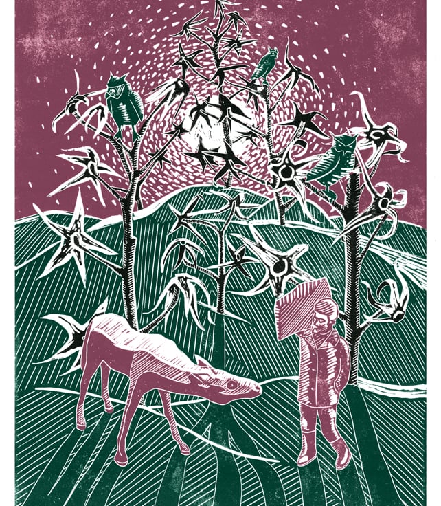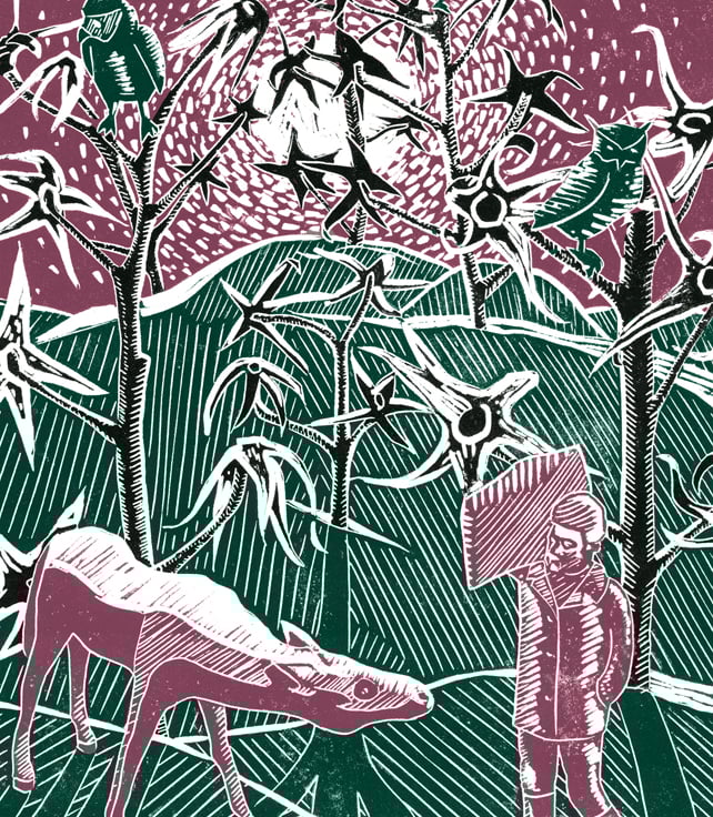 The result of eating too much cheese before bed-time. I was a little confused in the morning, and the only was I could make sense of the dream was to create a linocut!