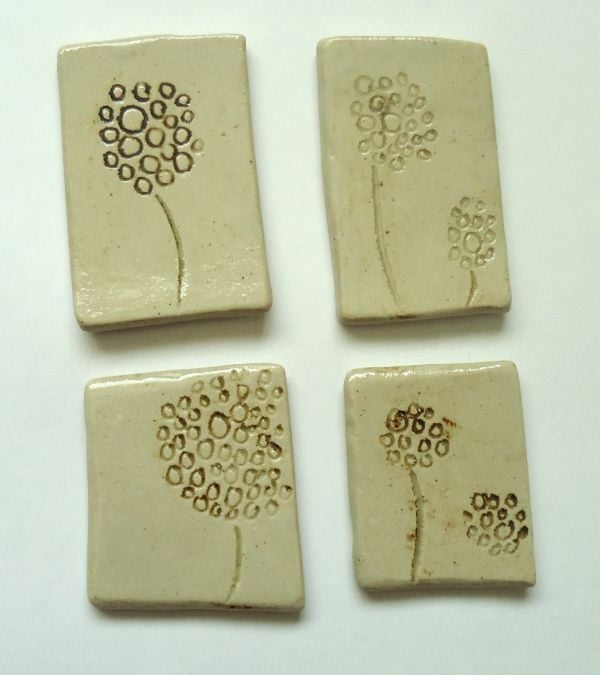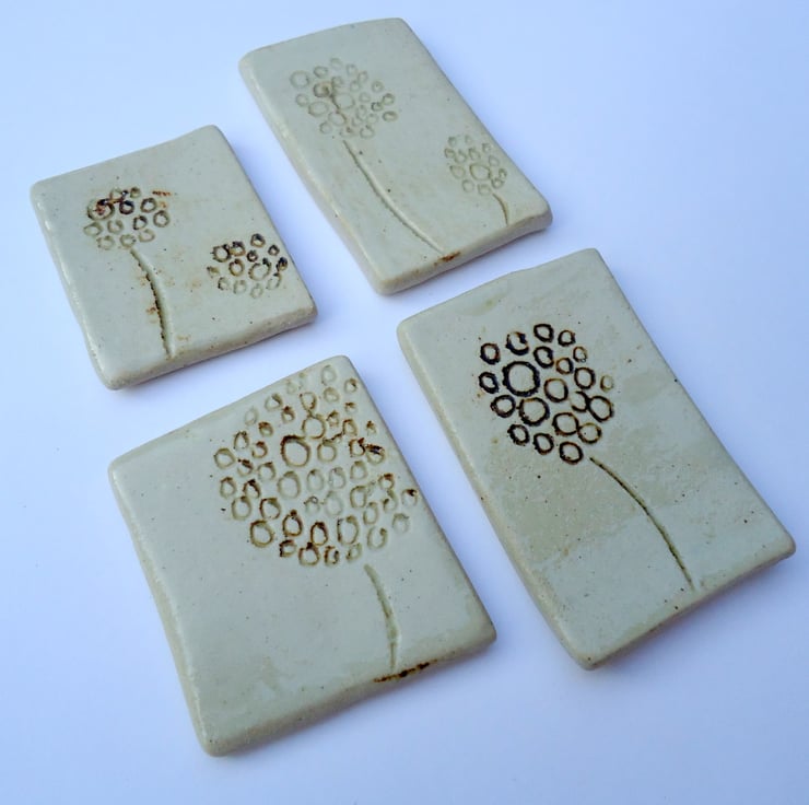 Decorate your fridge or any other magnetic surface with this set of 4 handmade ceramic dandelion magnets. Each approx 6 - 7cm in length.