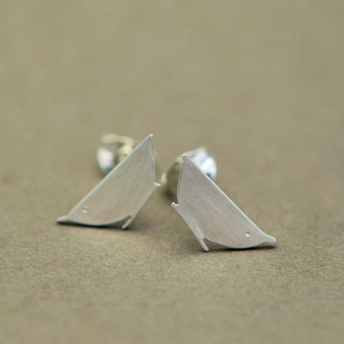 These beautiful handmade silver stud earrings are inspired by the Nuthatch bird. The simple design makes a lovely silhouette.