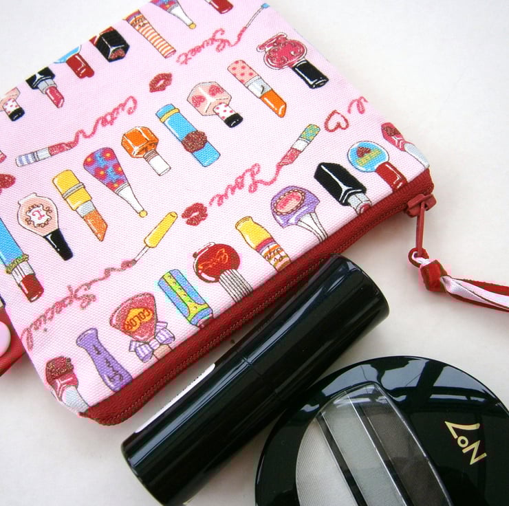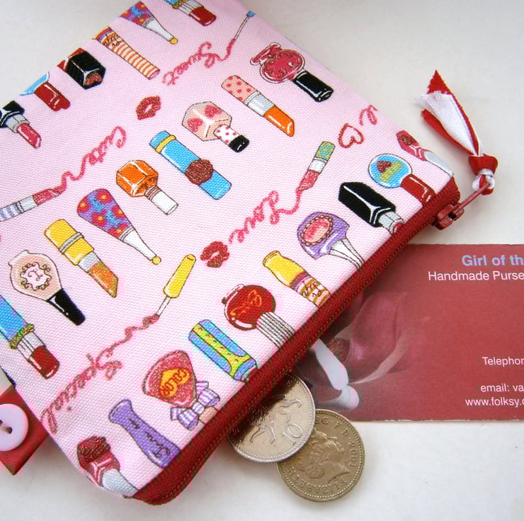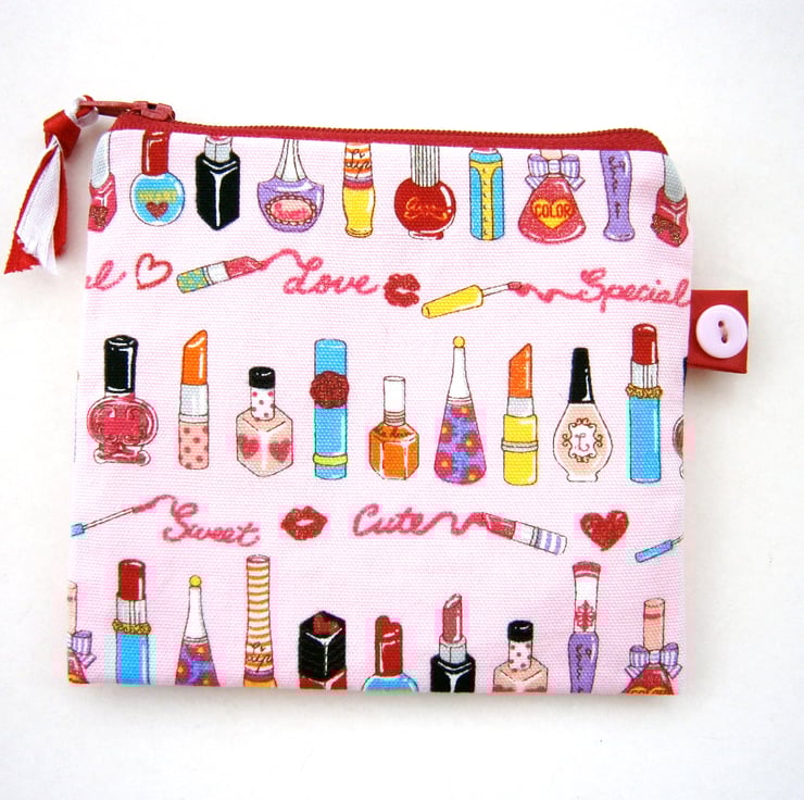 Pretty little cosmetics Japanese printed fabric coin purse, perfect for your coins, notes and cards.