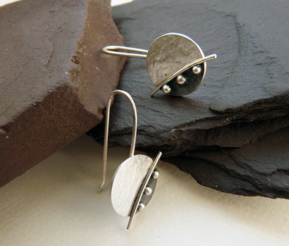 These contemporary disc earrings are completely handmade in sterling silver. They have been textured, partially oxidized and polished to a satin finish. They have handcrafted sterling silver earrings hooks soldered to them.