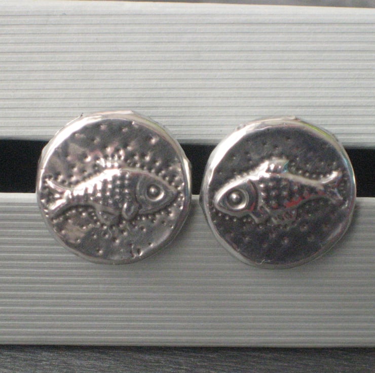 These cufflinks have been individually hand-made in shiny modern pewter. Due to the method of making, the links will vary slightly. Each link measures 2cm, 0.75ins,across. Gift boxed.