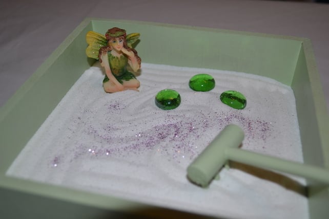 The garden is based on the Zen garden which is a meditative tool, and adapted to incorporate my love of fairies. I love working with wood, so making them is always lots of fun.