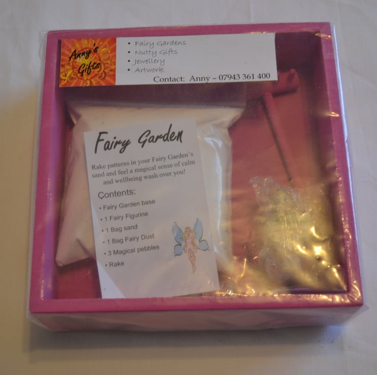These delightful fairy gardens consist of a handmade wooden base with feet (available in a range of colours), which comes complete with beautiful fairy figurine, packet of pure white sand, packet of fairy dust, 3 magical pebbles and mini rake for raking your sand. Dimensions: 17cm x 17cm x 5.5cm (H). This fairy garden makes a unique and special Christmas gift.