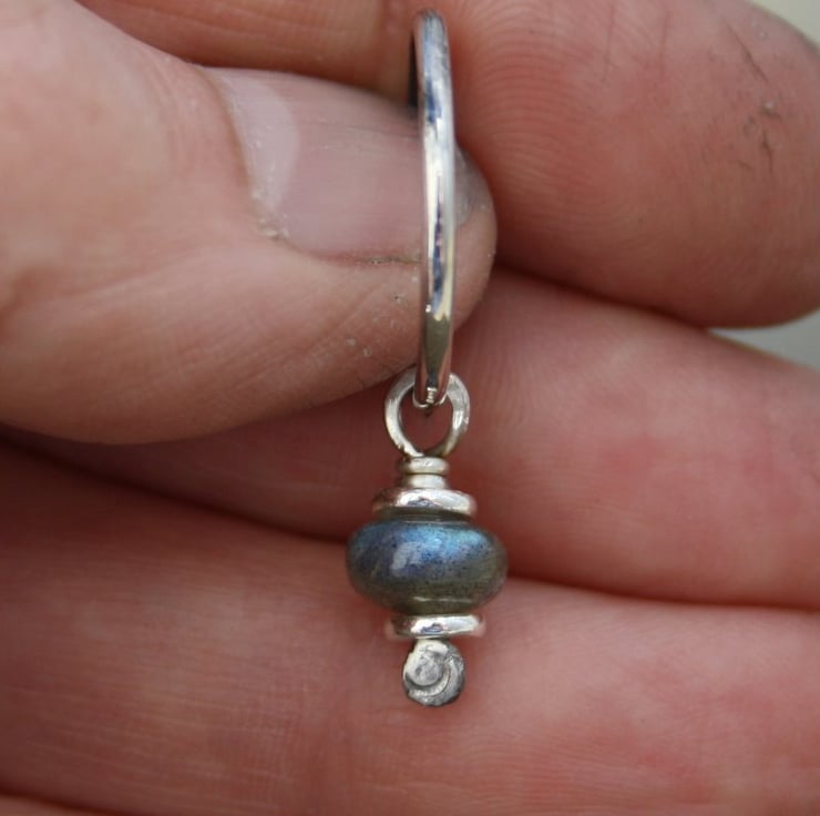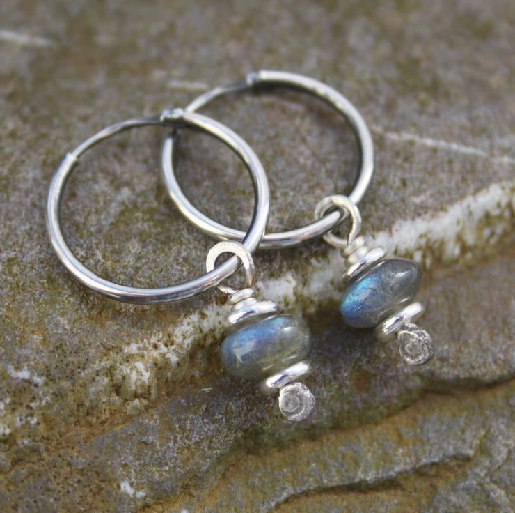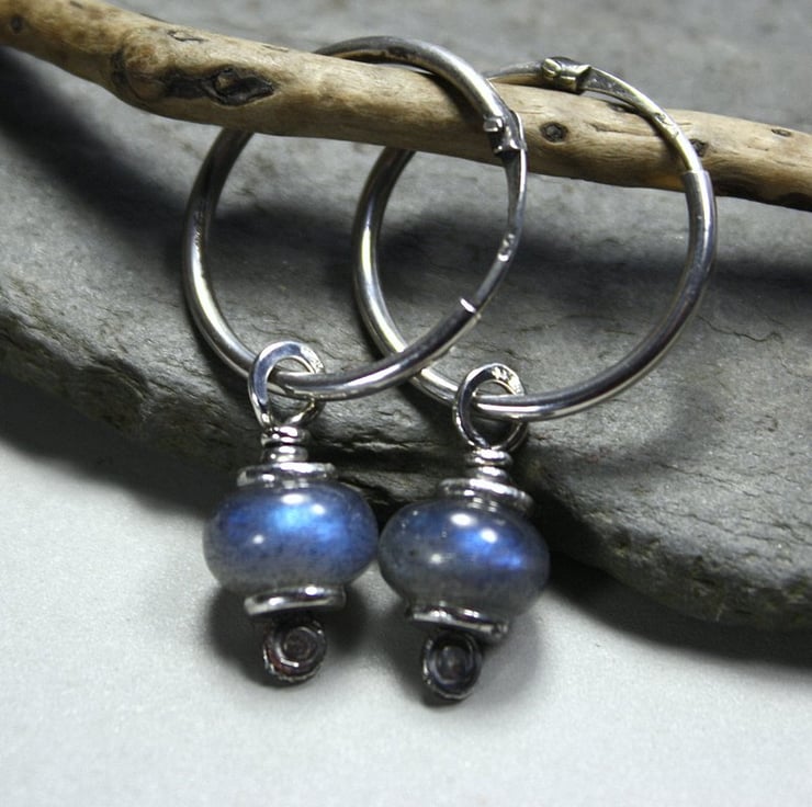 Stunning hand cut blue flash labradorite beads have been combined with oxidised silver to make these eye catching earrings.