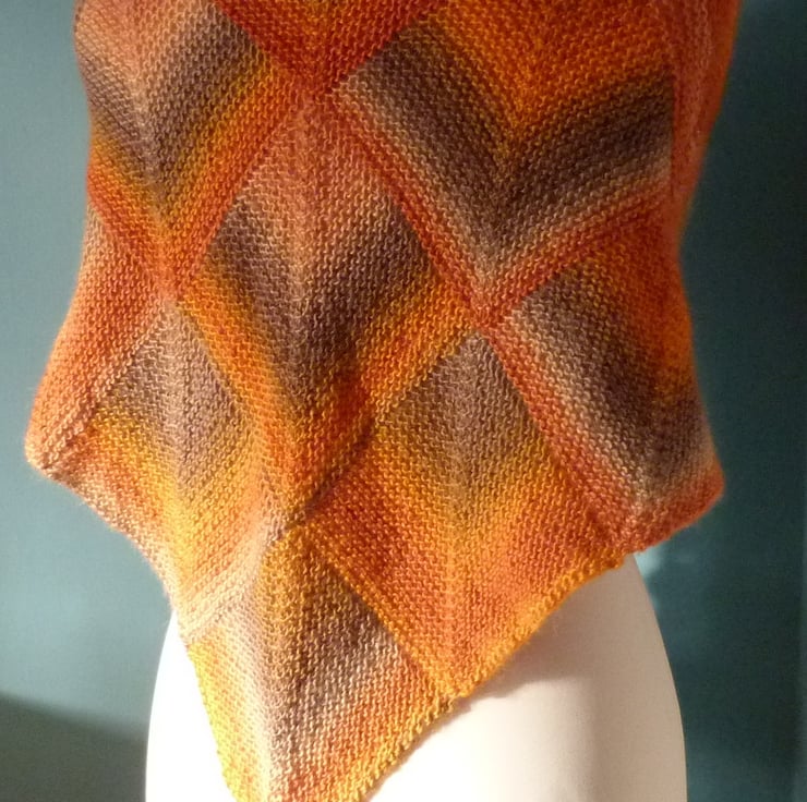 This wonderful shawl is very versatile to wear, either over your shoulders on a summer evening, or it can be worn with the widest part of the triangle in front of you and the ends wrapped around your neck as a cosy scarf for winter.