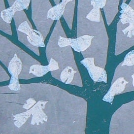 Back to trees and birds again, inspired, of course, by the time of year. Spring is full of hope, the sunshine makes us smile and if only there were no exams in June, all would be well. So in our house we need to add peace and calm in the build up to GCSE's, hence the doves.