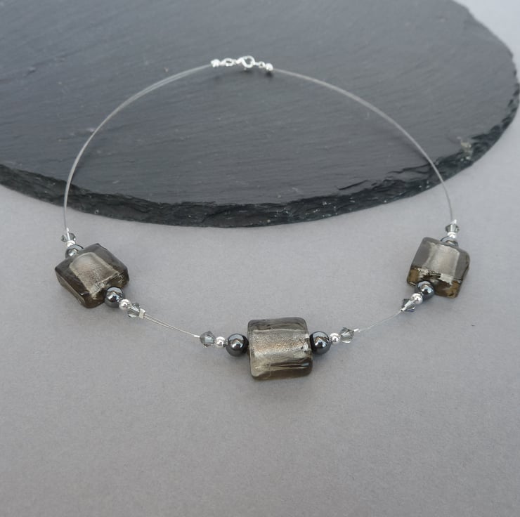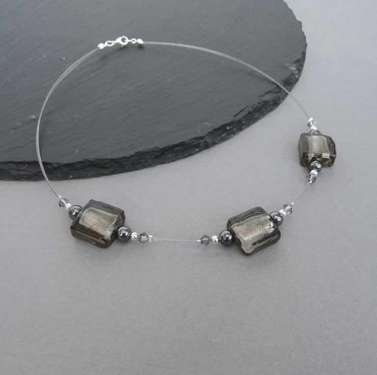 Grey Fused Glass Necklace - Lampwork Glass Bead Necklace - Choker Necklet