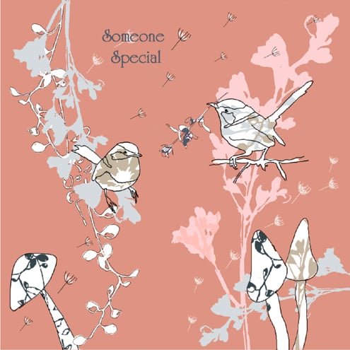 Designed by myself then printed onto 220gsm matt photographic paper and mounted onto 300gsm recycled card for a professional finish. My details are stamped on the back, the inside is left blank for your own message.