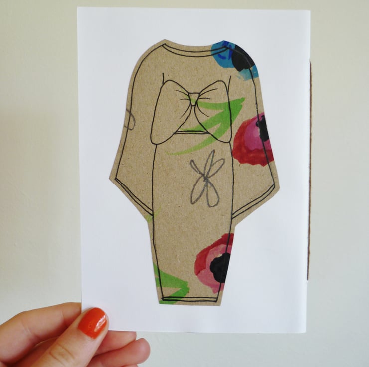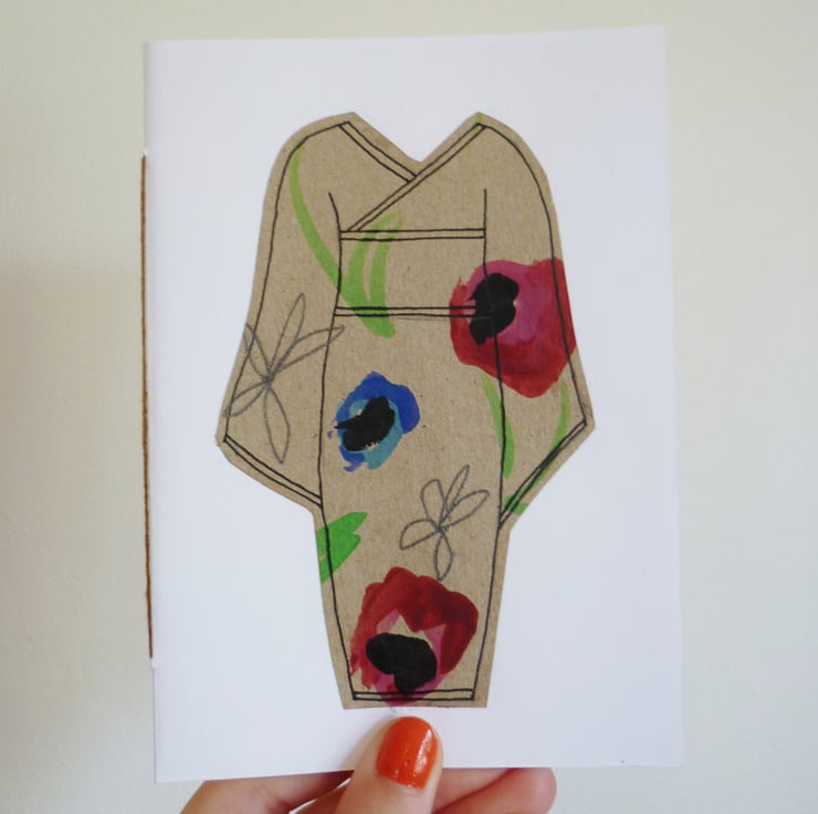 Each notebook is hand drawn/painted as well as being bound by hand. The front of the kimono design is on the front, the back is on the back :) They each have 40 sheets (back and front) of plain white paper inside.