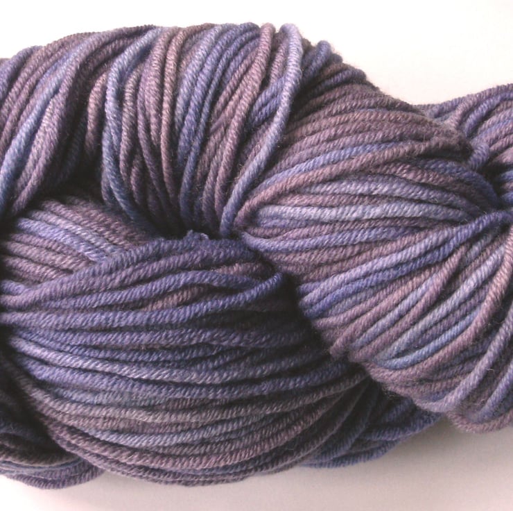 This hand dyed 100% Merino wool is a rich mix of blue and red purples with purple and pink lavender colours. Great colour saturation and softness. A couple of skeins would make a lovely scarf or accessories. Enough at the outset for a larger garment. I have dyed up 10 skeins in this colourwave.