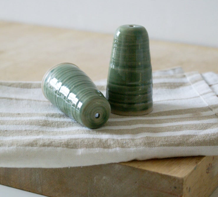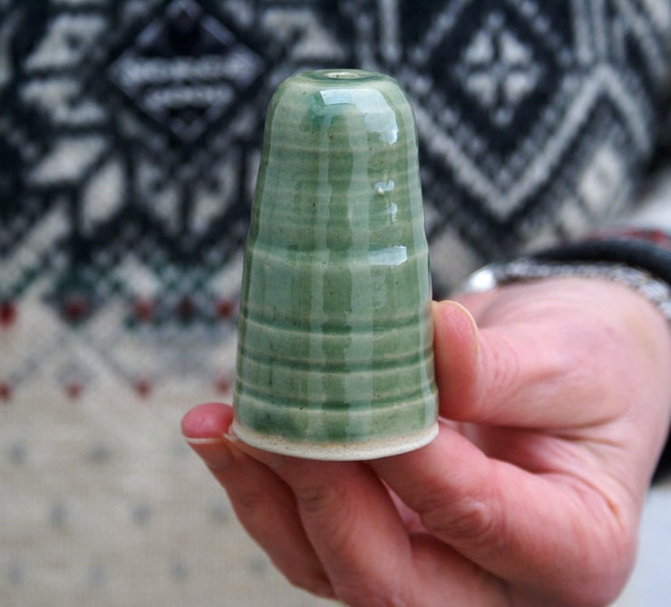 The chord pull features straight sides with distinctive throwing rings and an unglazed shelf at the bottom where you can feel the sandy texture of the clay. Each pull is easily attached by threading the chord through the hole in the top and knotting in place securely.