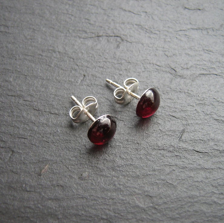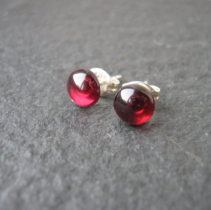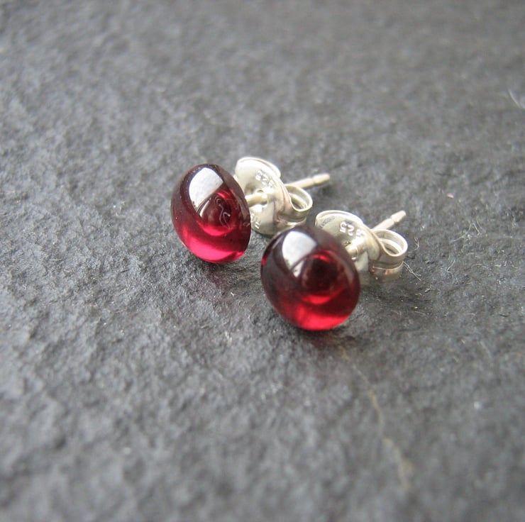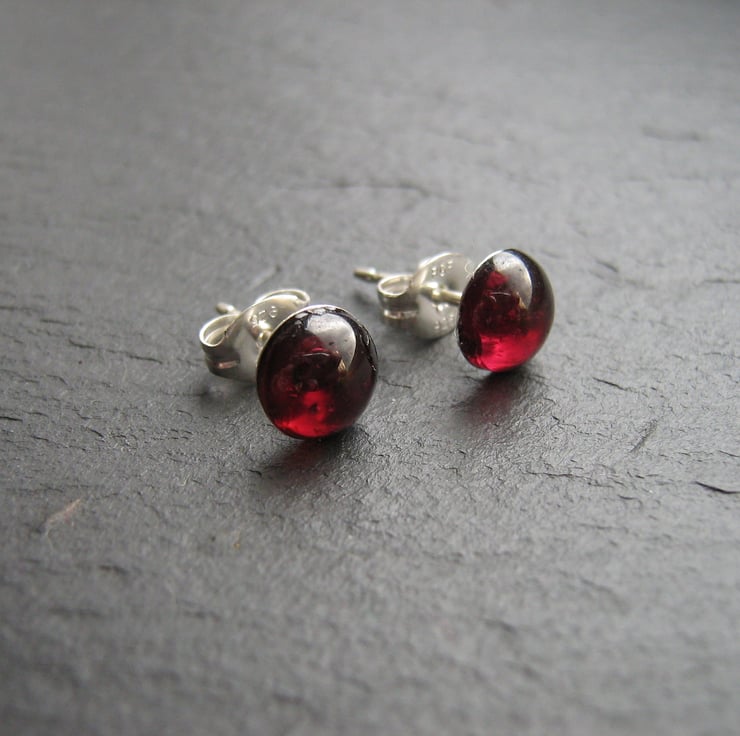 Two beautiful 6mm Garnet gemstones perch on sterling silver studs to make these dainty little earrings. The posts are marked 925 for silver purity and have been attached wth strong jewellers adhesive for lasting wear.