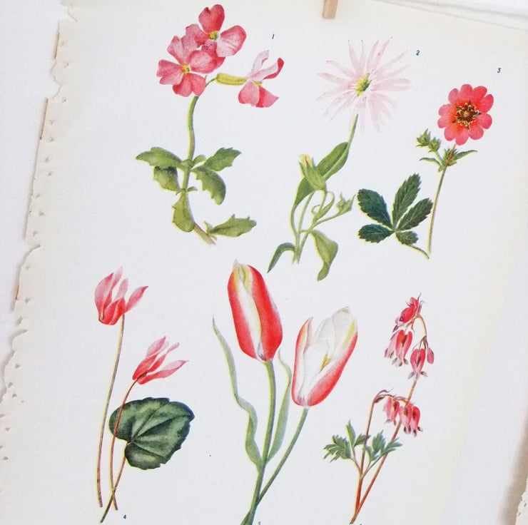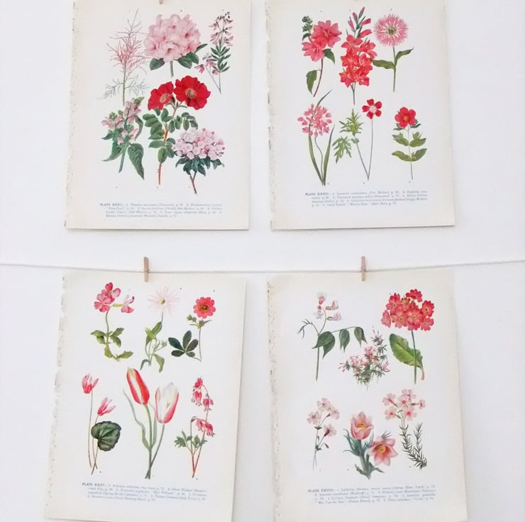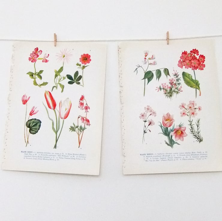 The pages are in good vintage condition and the colours of the floral illustrations are bright and clear. The pages do show some signs of use and the pages have a slightly aged look which adds to the charm of these gorgeous bookplates.