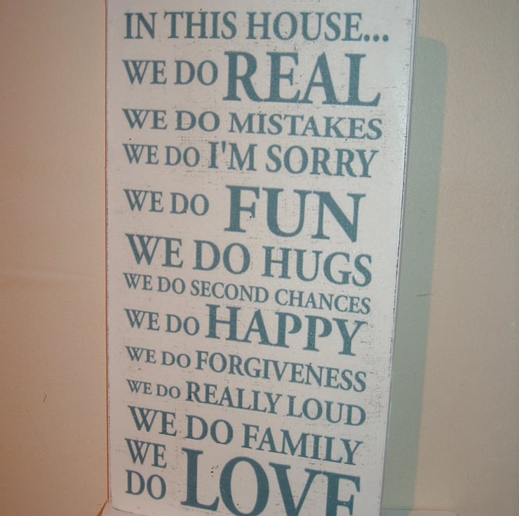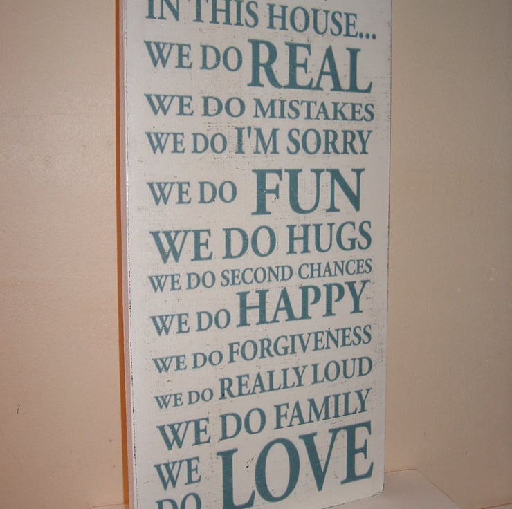 shabby chic distressed in this house plaque sign, approx 12 x 6 inches antique white and distressed and teal writing, lovely house accessory, please allow 3/4 days crafting thank you