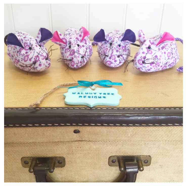 The mouse would be not be suitable for children under three years of age, due to the small parts, such as the bead 'eyes', and the filling is lavender.