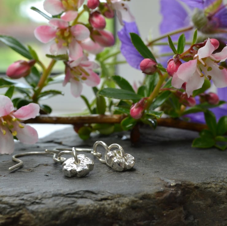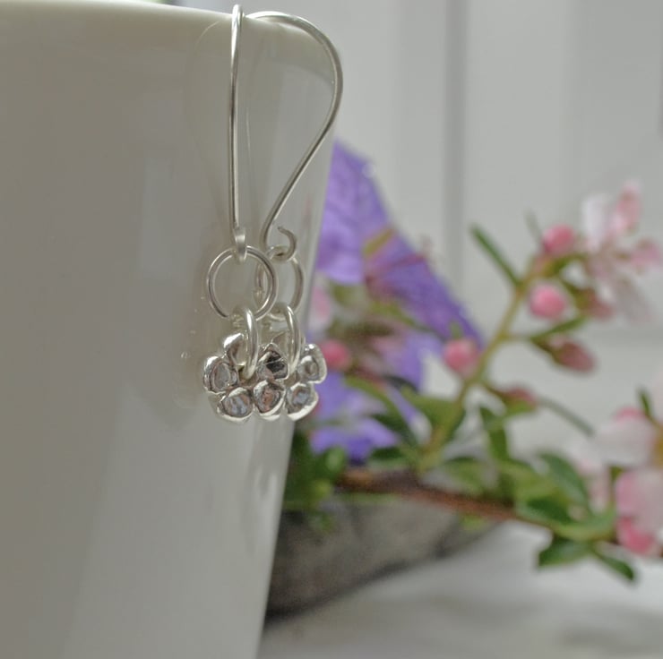 Cute as anything - these fine silver flowers are handmade by me, and dangle from my sterling silver earwires.