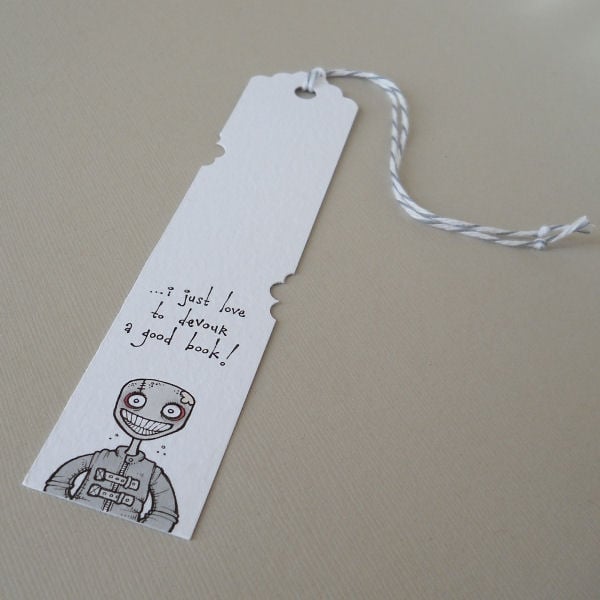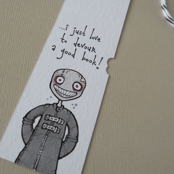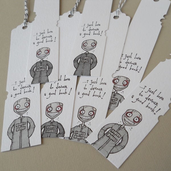 please note that as each zombie bookmark is drawn and handmade individually, the one you receive may differ slightly from those pictured above.