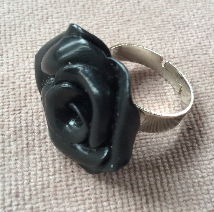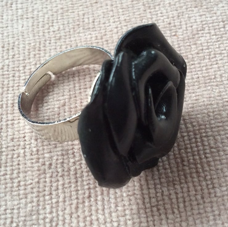 Beautiful black rose adjustable ring.