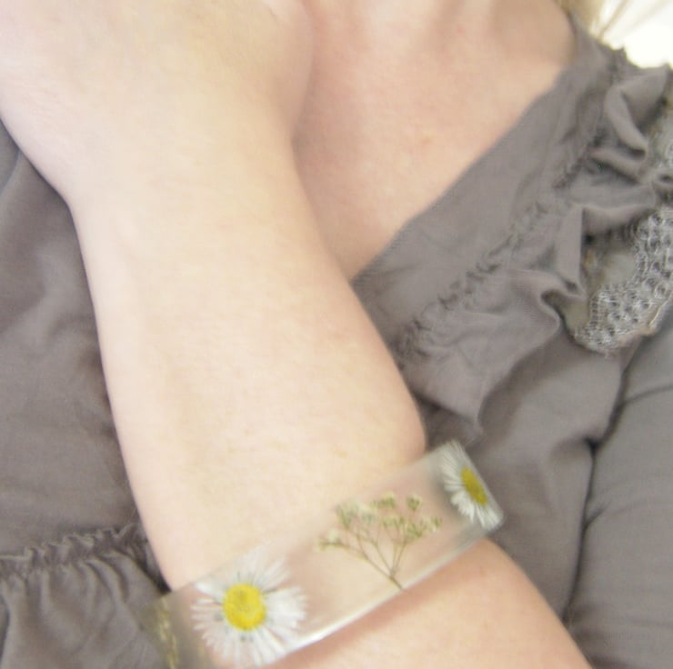 Real Daisy Bangle - Botanical Bracelet - Pressed Flowers - DAISY