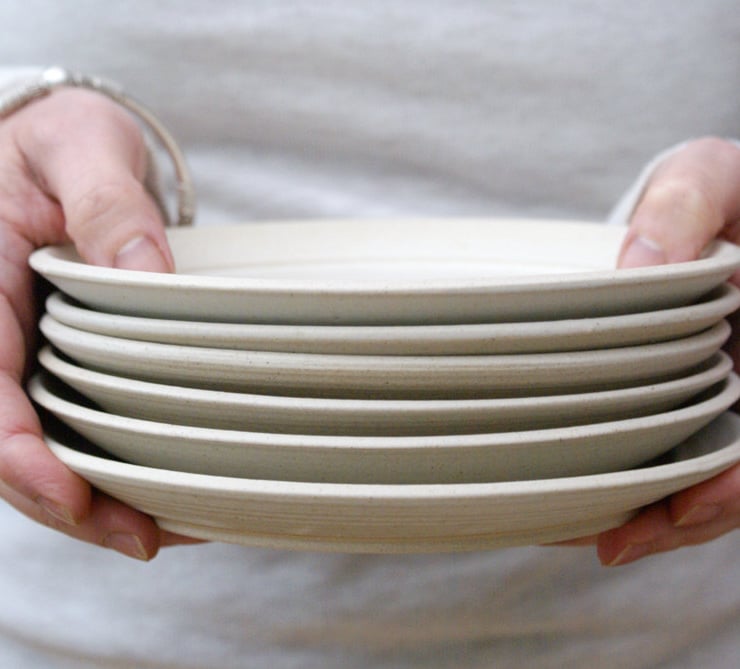 Hand thrown on my potters wheel these stoneware tea plates will be decorated in a glaze of your choice picked from the colour chart. They feature a large flat eating surface and a gently bevelled rim, each one is unique and can be made with or without textural throwing rings. These plates would make a beautiful handmade addition to your kitchen serving sandwiches and maybe a piece or two of cake at lunchtime!