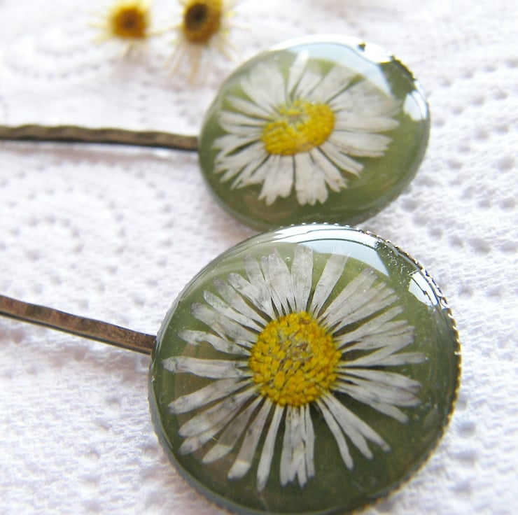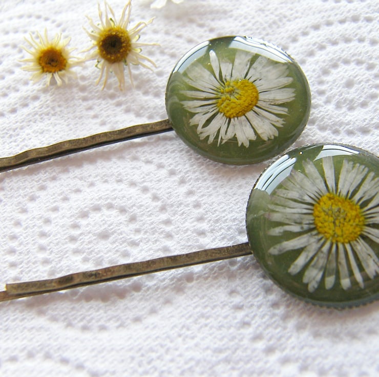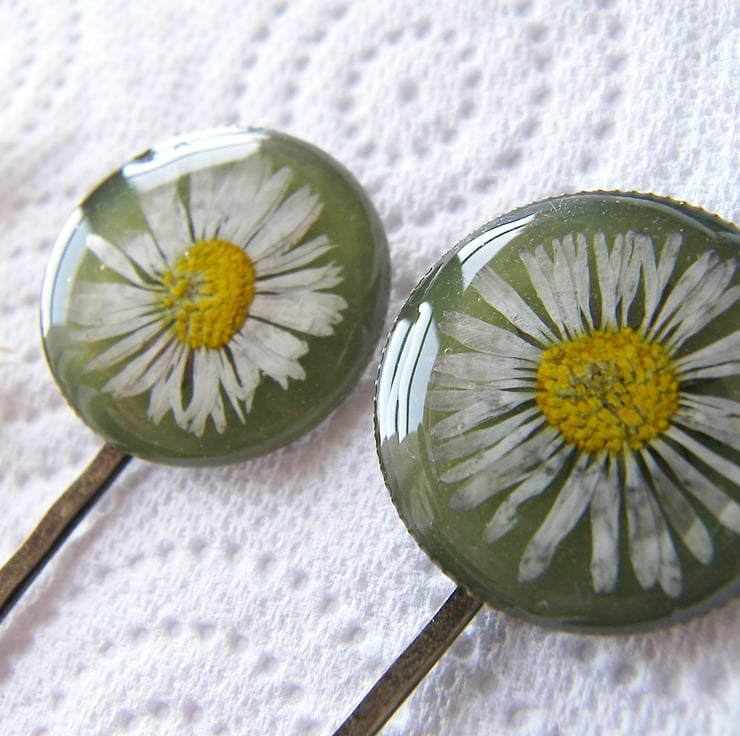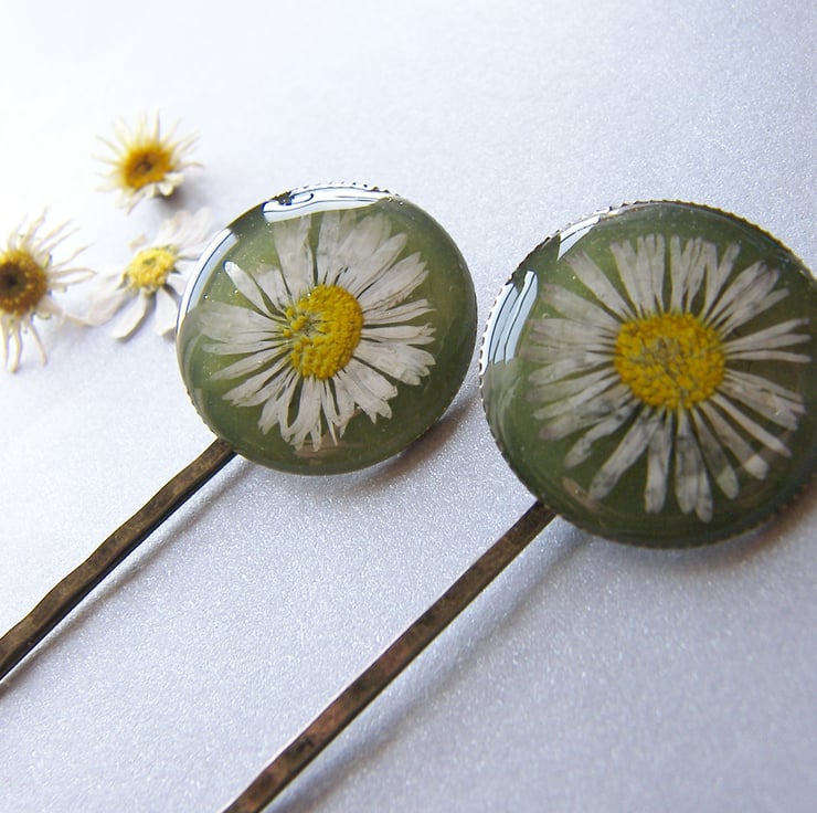 Pressed Daisy Hair Pins Bobby Pin Set of 2 - DAISY