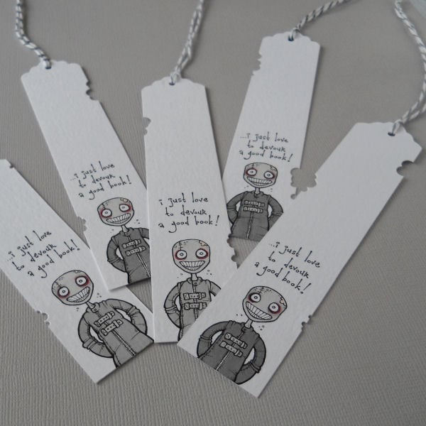 please note that as each zombie bookmark is drawn and handmade individually, the one you receive may differ slightly from those pictured above.