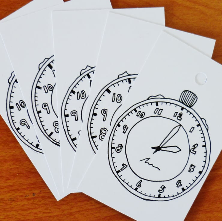 They measure 8.4cm x 5.3cm and come with a white ribbon attached, so all you need to do is write your message and stick it on!