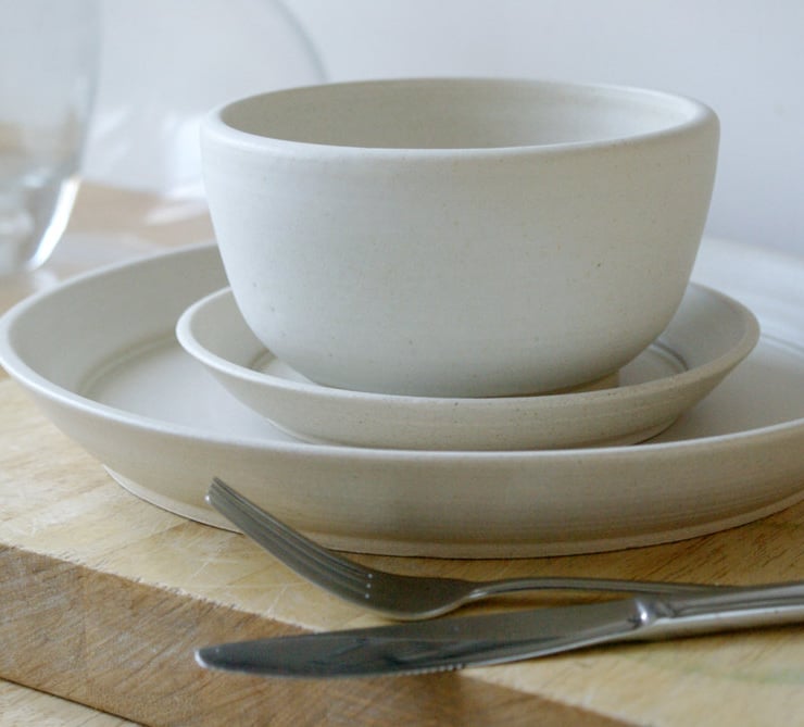Hand thrown on my potters wheel this stoneware place setting will be decorated in a glaze of your choice picked from the colour chart. Each custom place setting is handmade to order, this includes a dinner plate, side plate and small soup bowl. This listing is just for a set of two settings - if you would like a larger set please just get in touch.