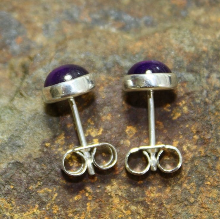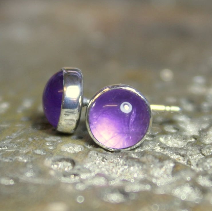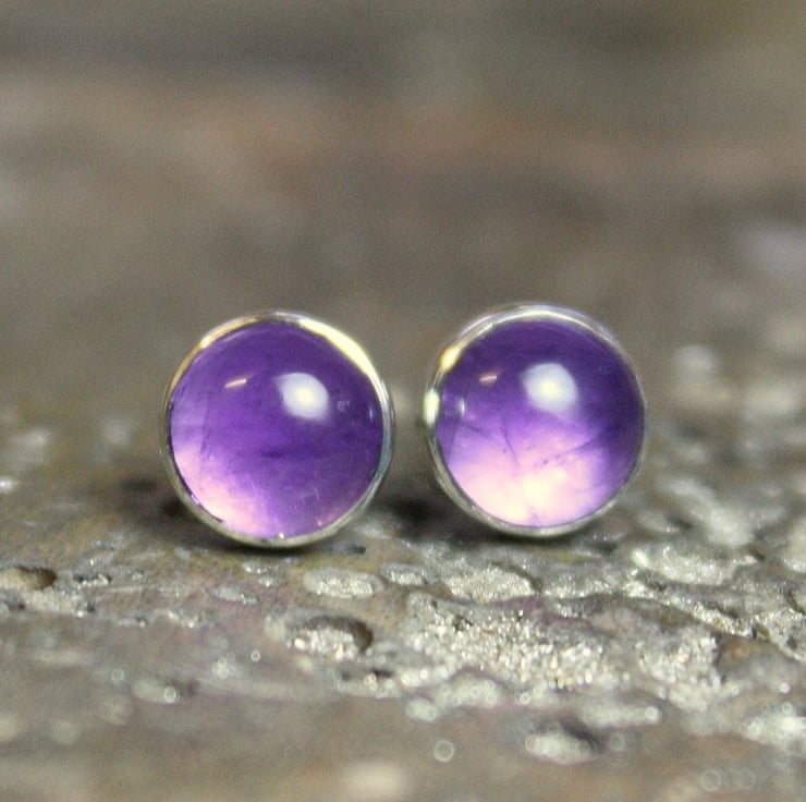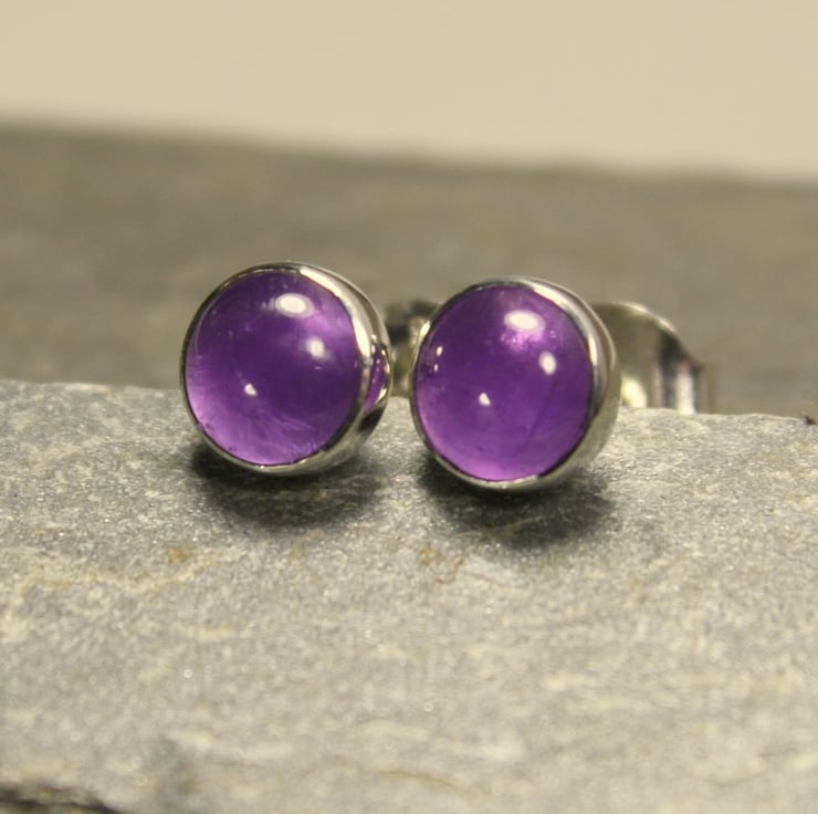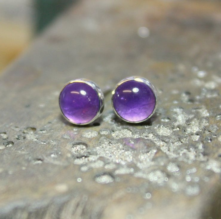 The amethyst cabs measure 6mm diameter. the silver has been polished to a bright finish.