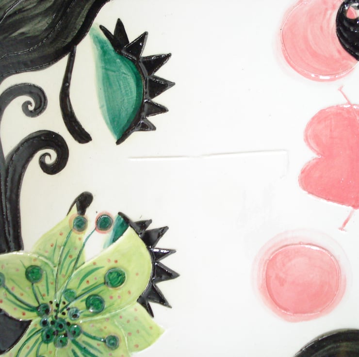 Large dinner plate hand painted in underglazes and glazed.