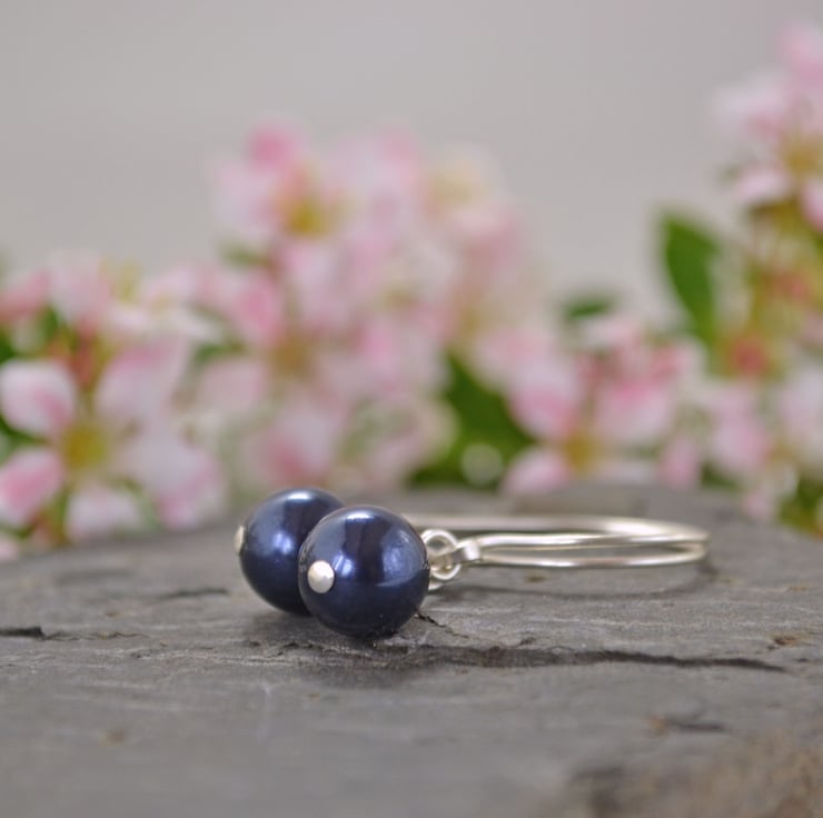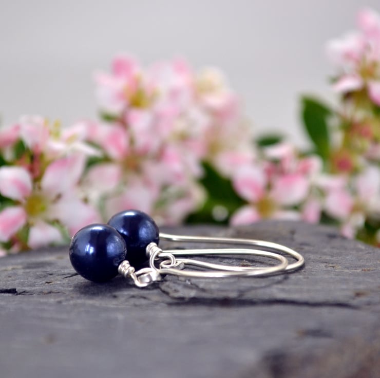 These swarovski pearls are such a deep, rich blue. I handmade the sterling silver earwire, and the pearl dangles from sterling silver wire.